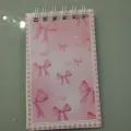 Mini caderno rosa com delicada estampa de laços, ideal para anotações rápidas, listas e ideias criativas. Encadernação em espiral prateado que facilita a escrita em qualquer posição e folhas de boa qualidade para maior durabilidade. Pequeno e leve, perfeito para levar na bolsa, na escola ou no trabalho, unindo praticidade e estilo no dia a dia.
